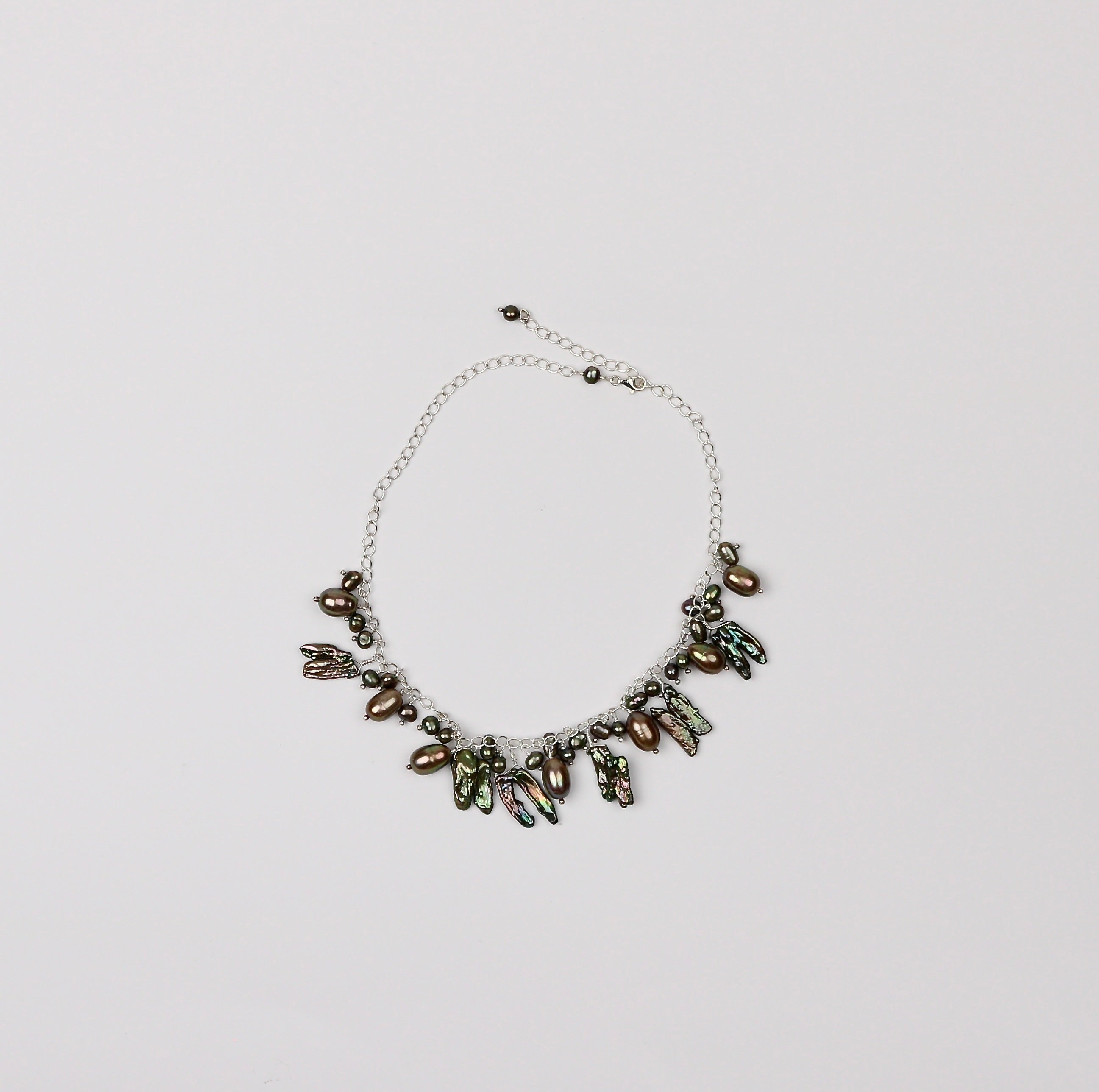 Brown Drop Pearl w Greenish Brown Keishi Necklace