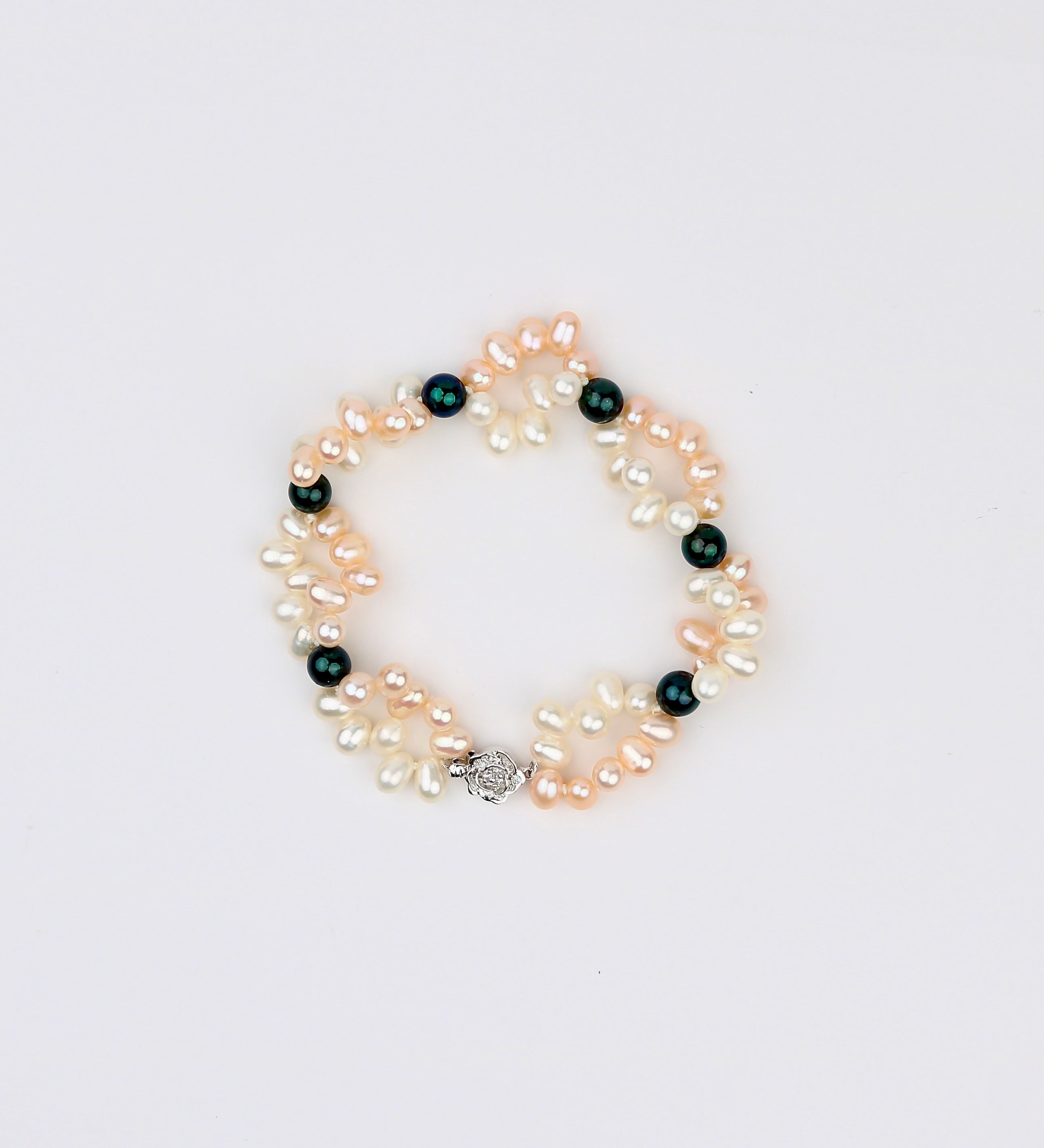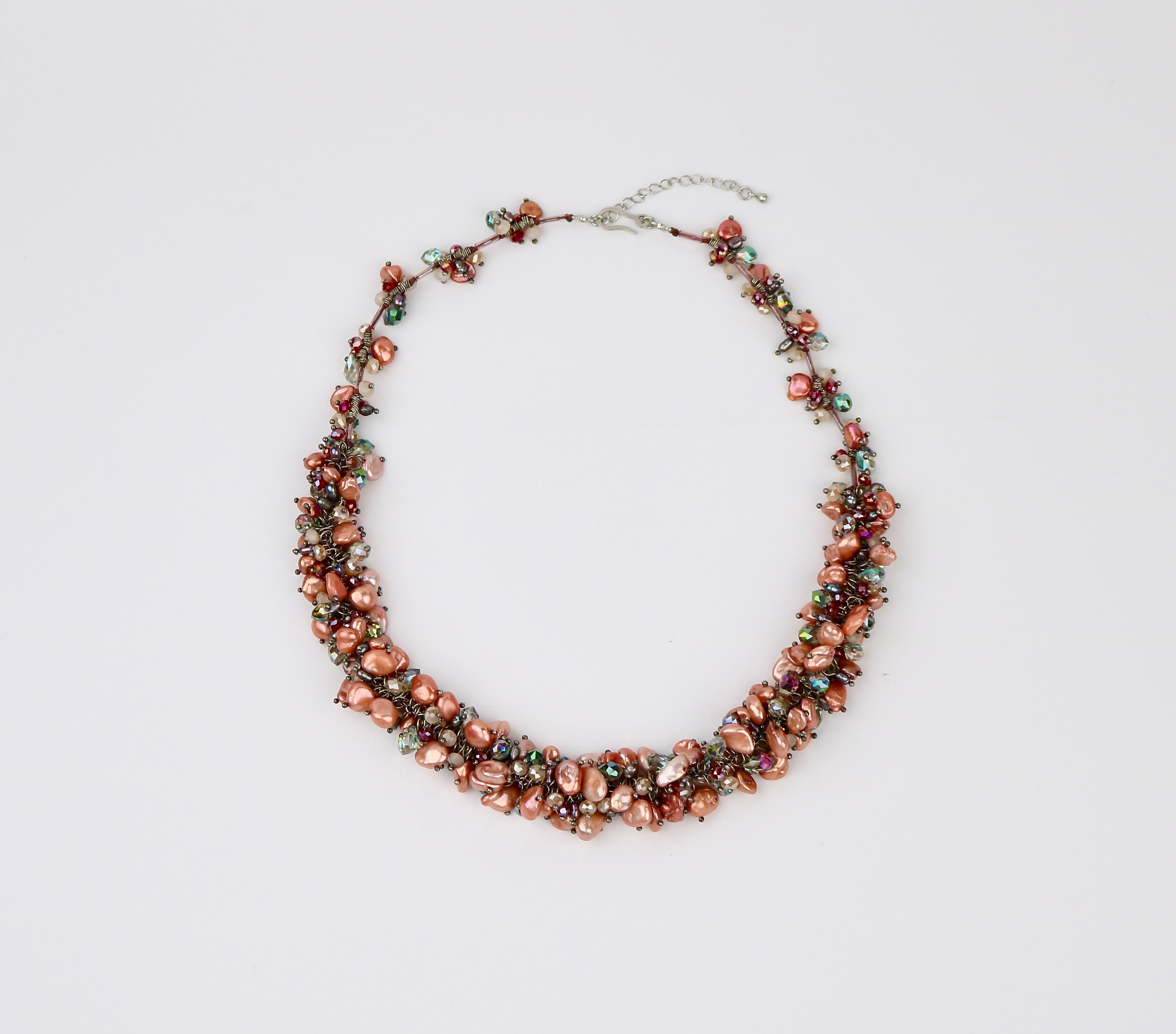 Stunning Necklace: Brown Coin Pearl and Small Gemstones