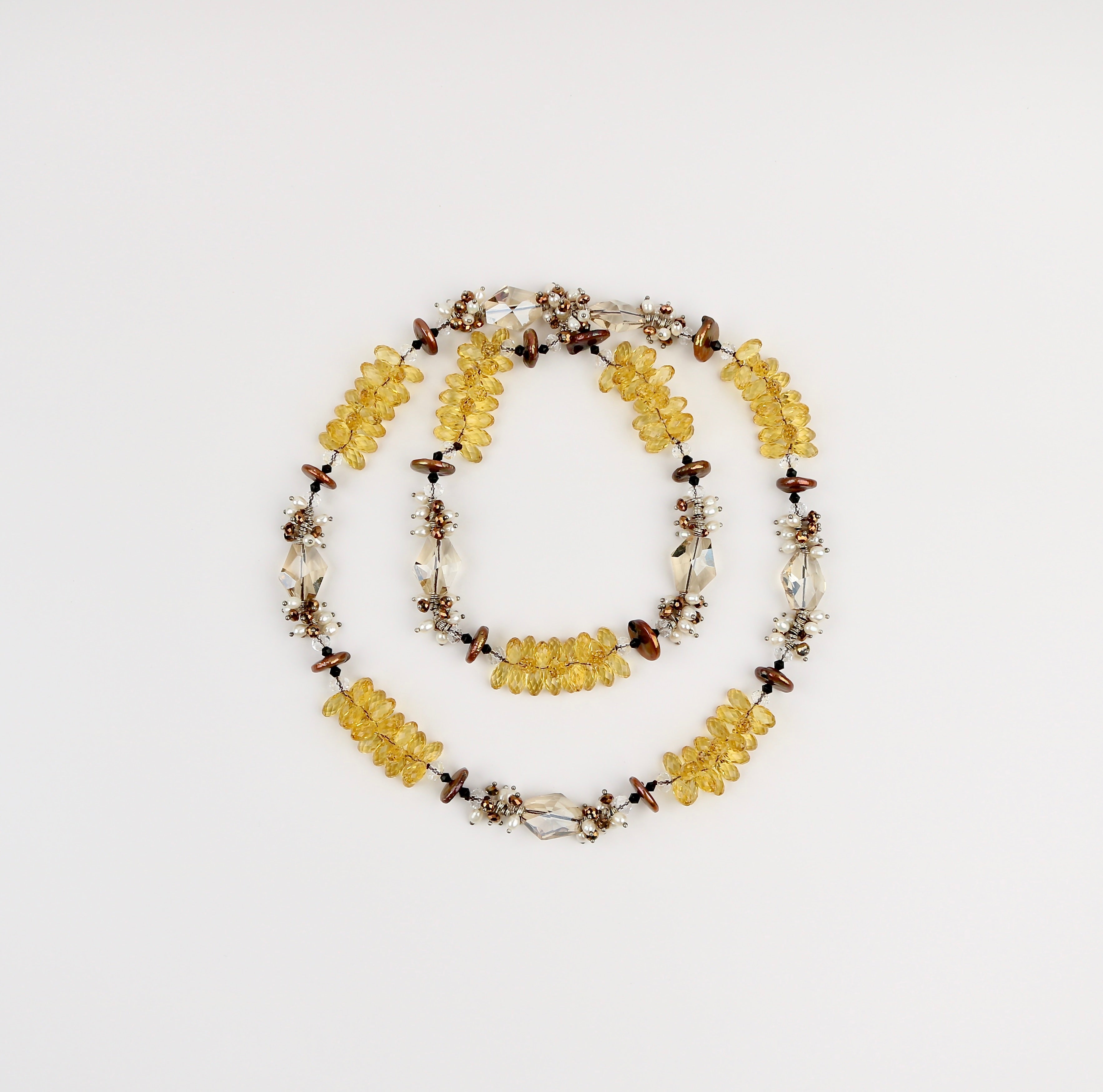 Stunning Necklace: Smoky Quartz Citrine with Small Pearls