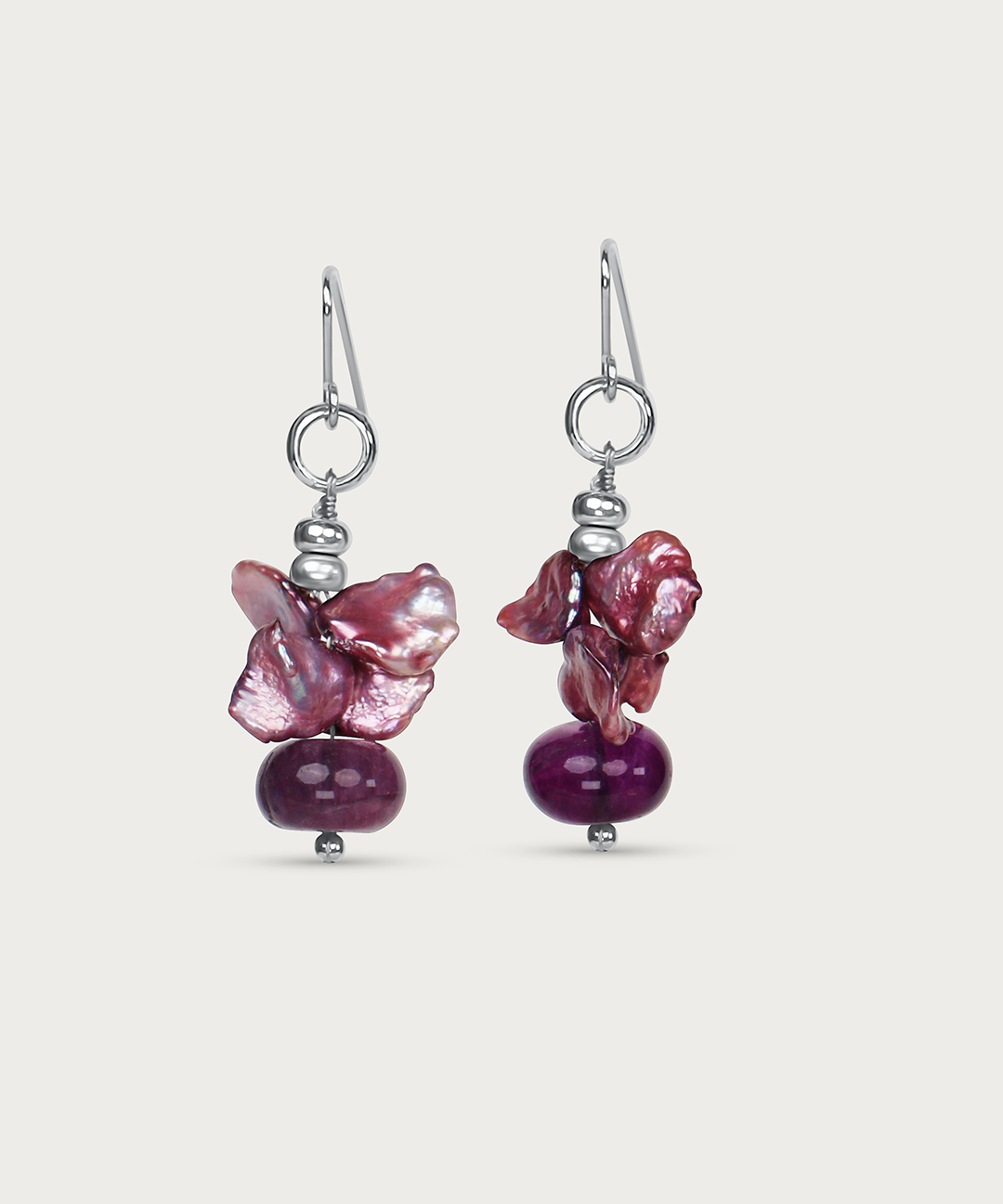 Stunning Necklace: Agate GemSquare Drop Keishi Pearl Necklace