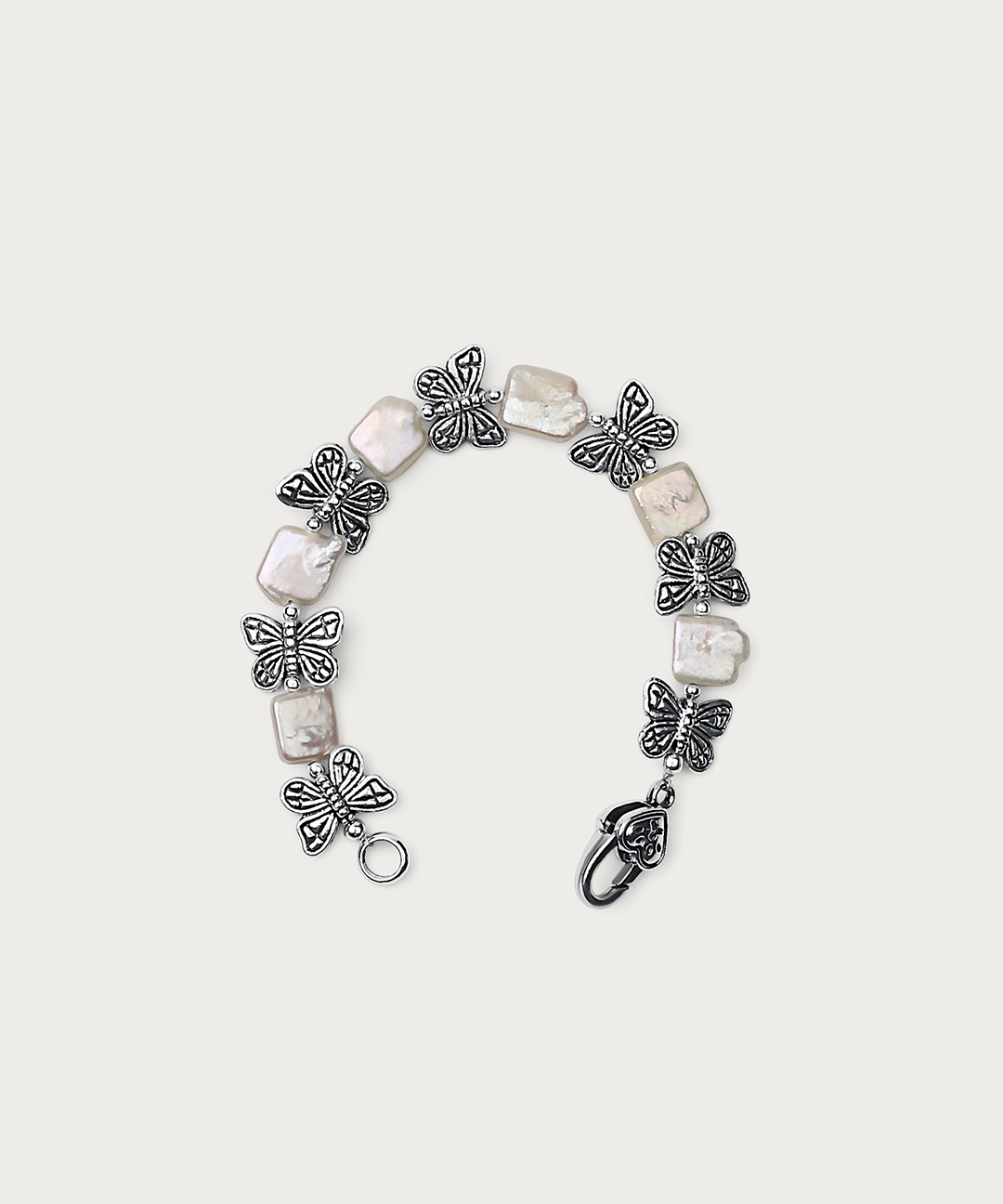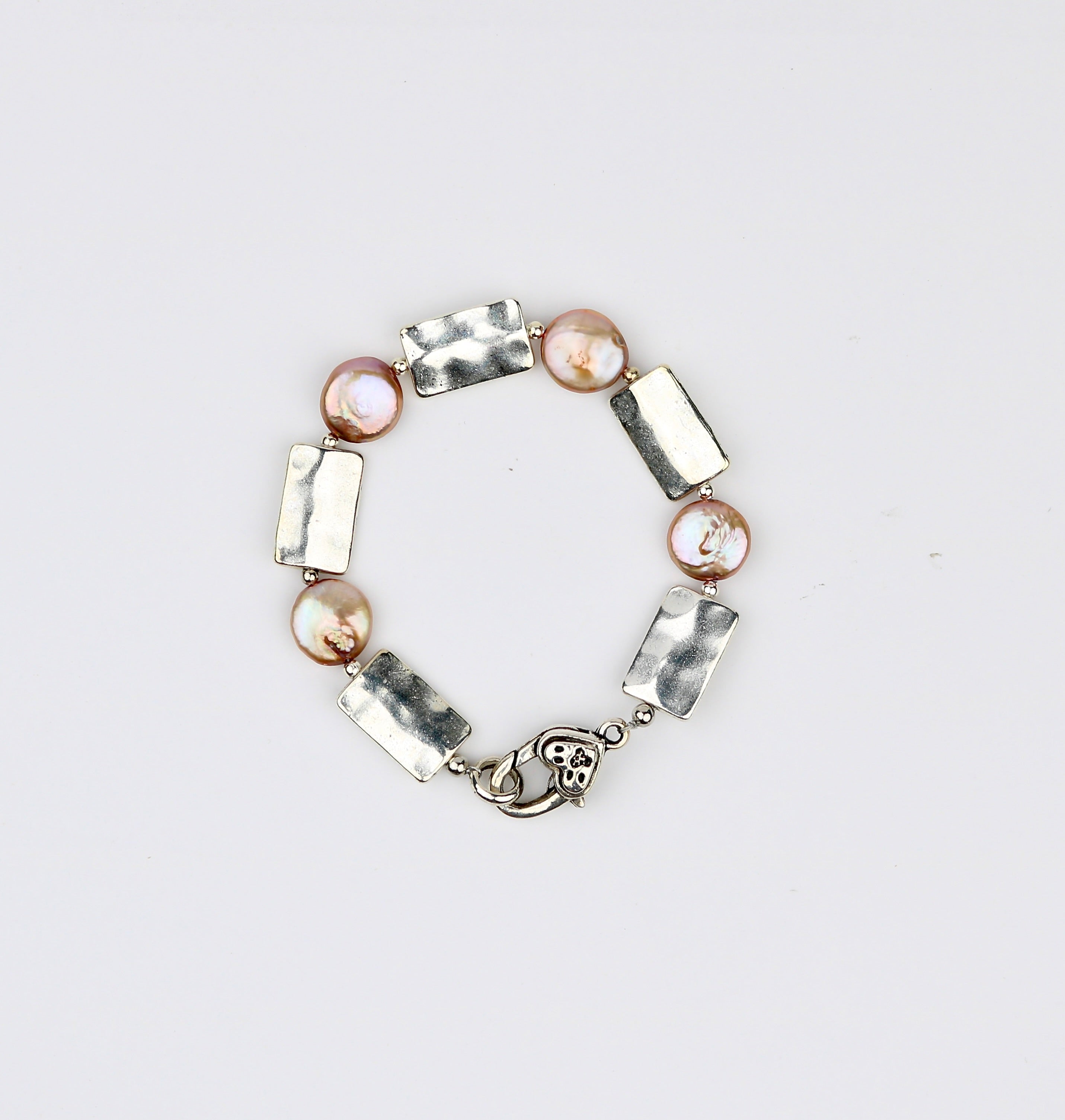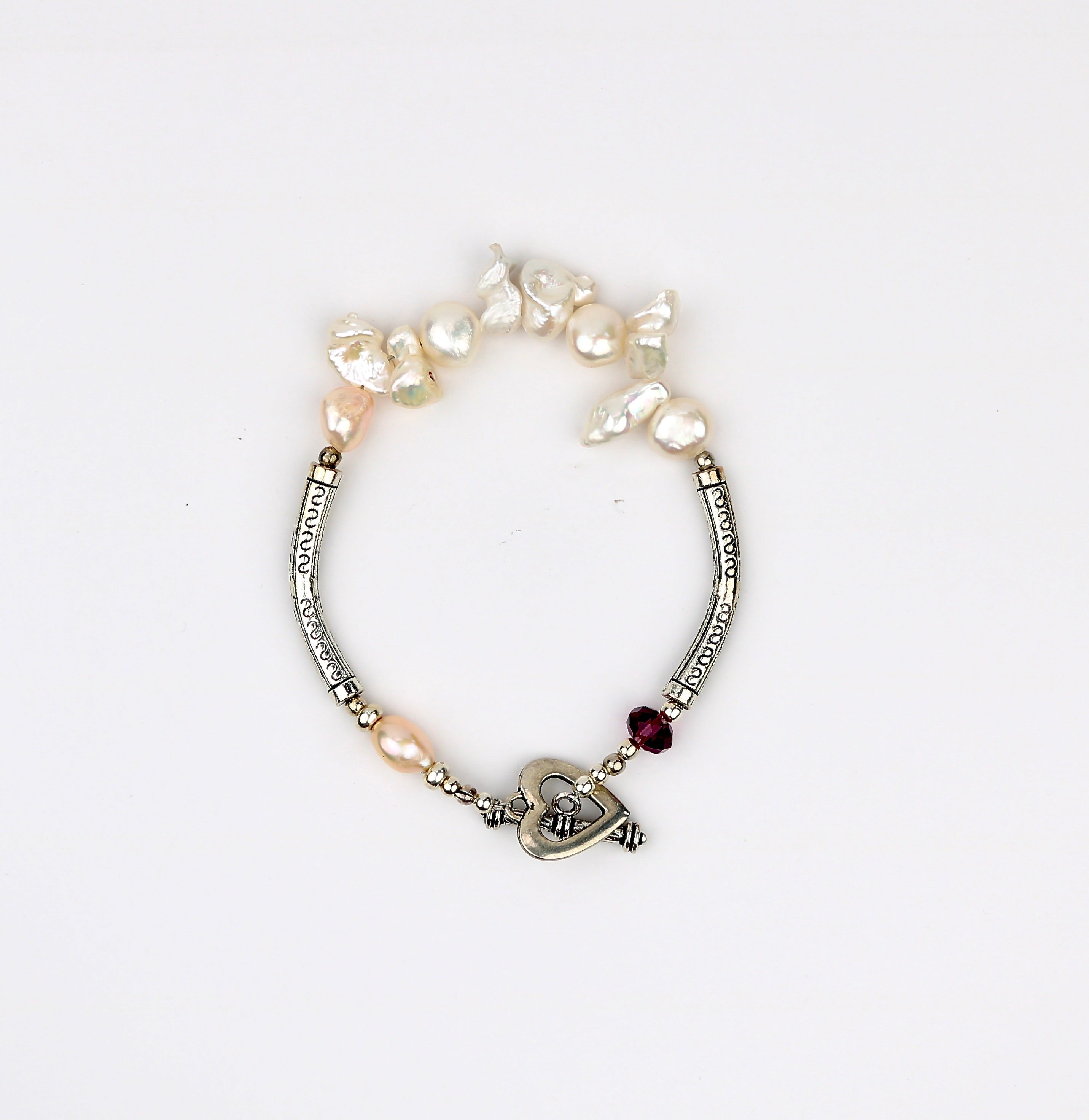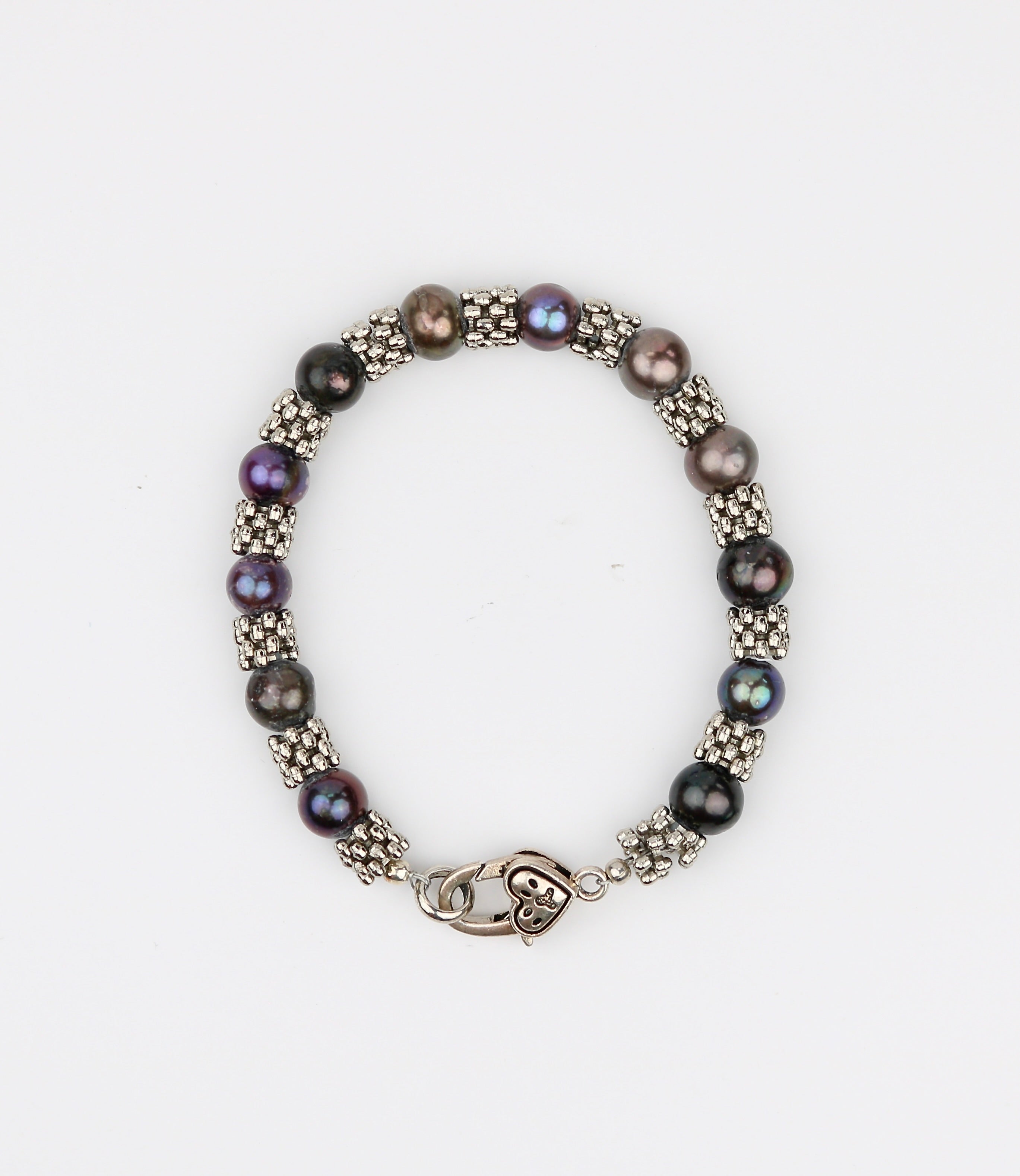 Blue Cloisonne Rose and Green Quartz Pearl Glaze Bracelet