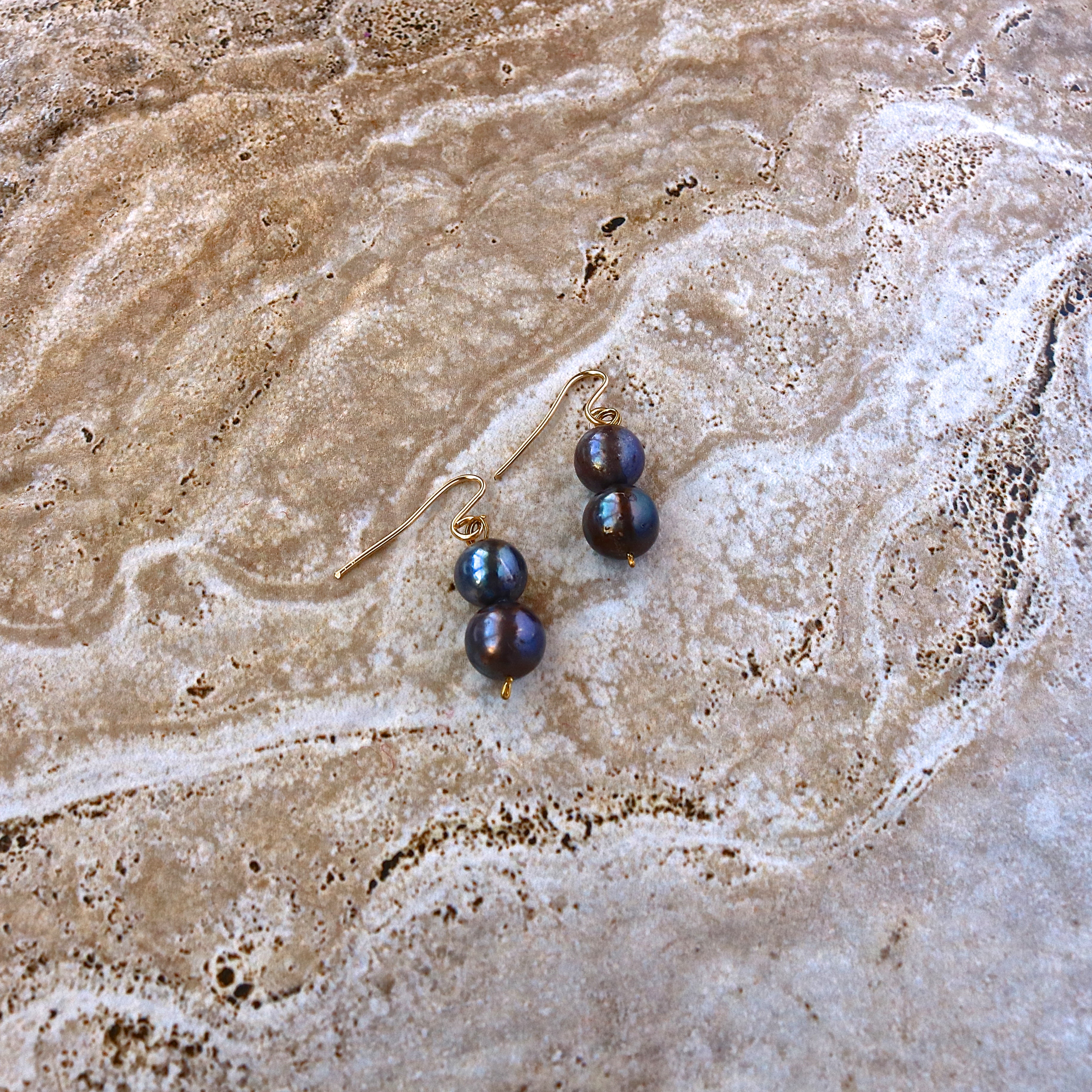 Double Freshwater Black Pearl Earring