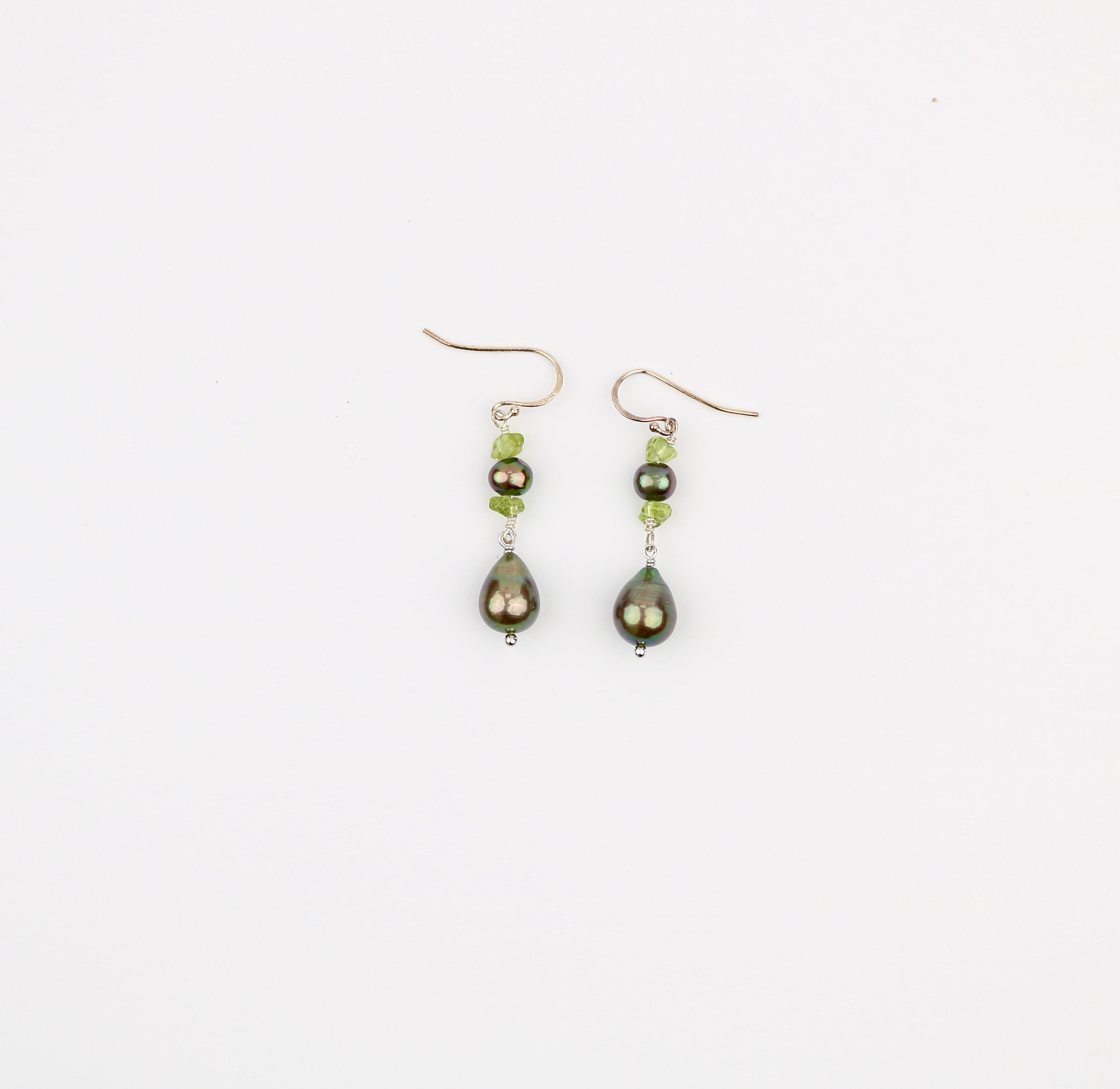 Brown Nugget Pearl w Peridot Earring