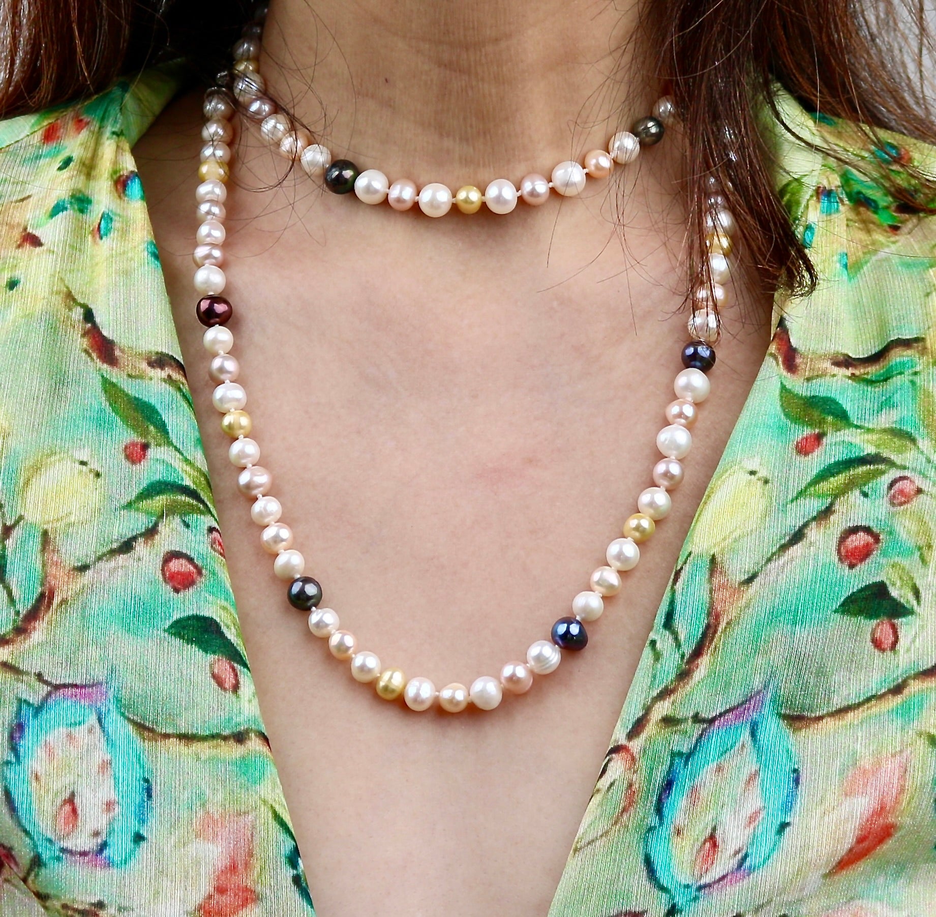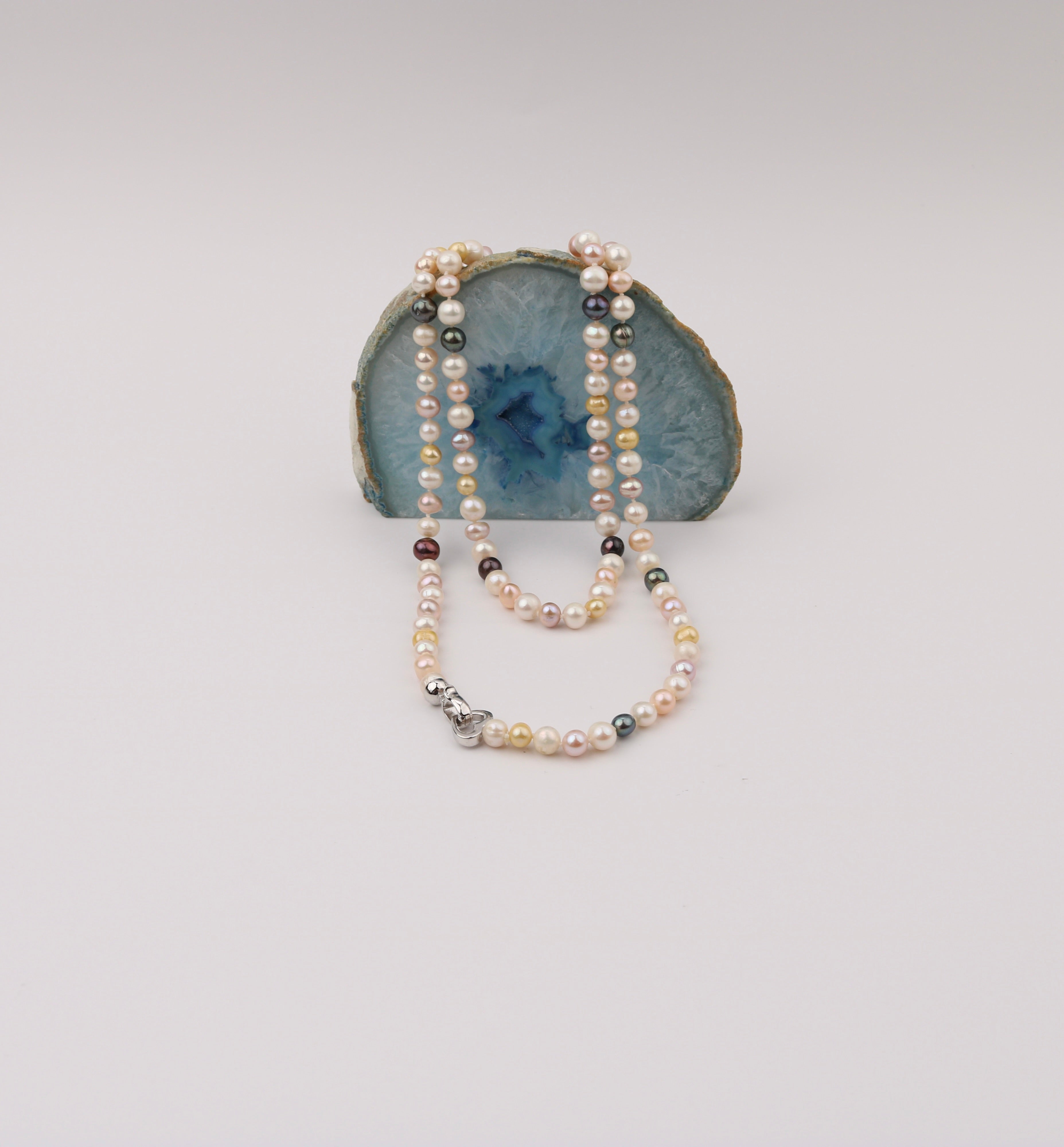 • Hand knotted multicolor freshwater close-round pearls